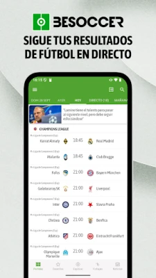 Únete a la gran comunidad de BeSoccer y vive el fútbol como nunca. Sigue resultados y partidos en directo de todas las competiciones y equipos. Accede al mercado de fichajes en tiempo real y las últimas noticias del deporte rey.