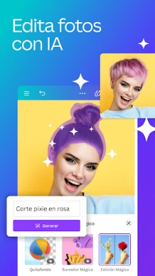 Impulsa tu creatividad con funciones inteligentes, incluyendo herramientas de IA que facilitan tareas complejas: desde la generación automática de diseños a partir de una imagen con Diseño Mágico, hasta la adición de elementos con Edición Mágica, o la eliminación de fondos con Borrador Mágico. Canva también actúa como tu asistente multilingüe, traduciendo documentos importantes a más de 100 idiomas. Diseña publicaciones para Facebook, historias de Instagram, invitaciones para eventos, logotipos empresariales y presentaciones impecables, todo desde un único y poderoso entorno.