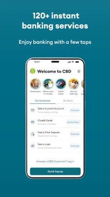 La CBD App redefine la agilidad bancaria. En cuestión de minutos, utilizando solo tu Emirates ID, puedes abrir una Cuenta Corriente, solicitar una Tarjeta de Crédito, un Préstamo Rápido, o incluso una pre-aprobación para un Préstamo Hipotecario, todo desde la comodidad de tu dispositivo móvil. Con un diseño intuitivo y más de 120 servicios bancarios a tu disposición, la mayoría procesados al instante, cada transacción del día a día se simplifica, proporcionándote un control financiero sin precedentes.