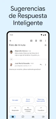 Gmail es más que un simple correo; es tu centro neurálgico para la colaboración, integrado a la perfección con Google Workspace. Conéctate con colegas a través de Google Chat, organiza reuniones en Google Meet con calidad superior y trabaja en equipo de manera estructurada en los Espacios dedicados. Responde a invitaciones de Google Calendar sin salir de la aplicación y lleva tu productividad a todas partes, incluso a tu muñeca, añadiendo un recuadro de Gmail en tu reloj Wear OS para acceder a un resumen rápido. Con Google Workspace, la conexión, creación y colaboración de tu equipo alcanzan un nuevo nivel de simplicidad y eficacia, potenciando tu jornada laboral desde una única experiencia unificada.