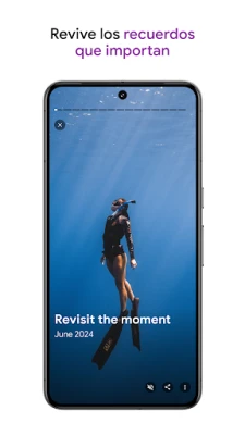 Encontrar cualquier foto es ahora un juego de niños gracias a la búsqueda contextual de Google Fotos. Simplemente describe lo que buscas con lenguaje natural, como "Alicia y yo riéndonos" o "Emma pintando en el patio", y encuentra tus recuerdos al instante. Revive tus historias favoritas y compártelas fácilmente con tus seres queridos, incluso si ellos no utilizan Google Fotos. Y para ir más allá de la pantalla, Google te permite convertir tus imágenes digitales en libros de fotos o impresiones, añadiendo un toque tangible a tus memorias. Con Google Lens integrado, incluso puedes explorar el mundo dentro de tus fotos, identificando objetos y textos para descubrir más.