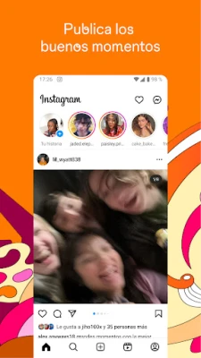 Mantén esos lazos significativos a través de formatos dinámicos y personales. Presenta tus vivencias con Stories y Notas, efímeras por naturaleza y potentes en su impacto, desapareciendo tras 24 horas. Fomenta la cercanía en tus círculos más íntimos con chats grupales y comparte momentos sin filtro con tus Mejores amigos. Revive y exhibe tus memorias más preciadas, desde aventuras lejanas hasta encuentros cercanos, directamente en tu feed principal. Dale a cada publicación tu estilo inconfundible con plantillas exclusivas, pistas musicales, stickers y una variedad de filtros artísticos.